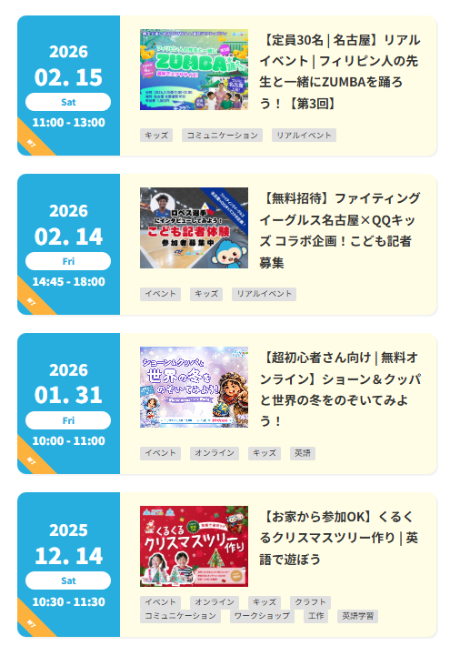 QQキッズは、無料体験がレッスン2回できます。他には保護者向けのZoom説明会が随時あります。